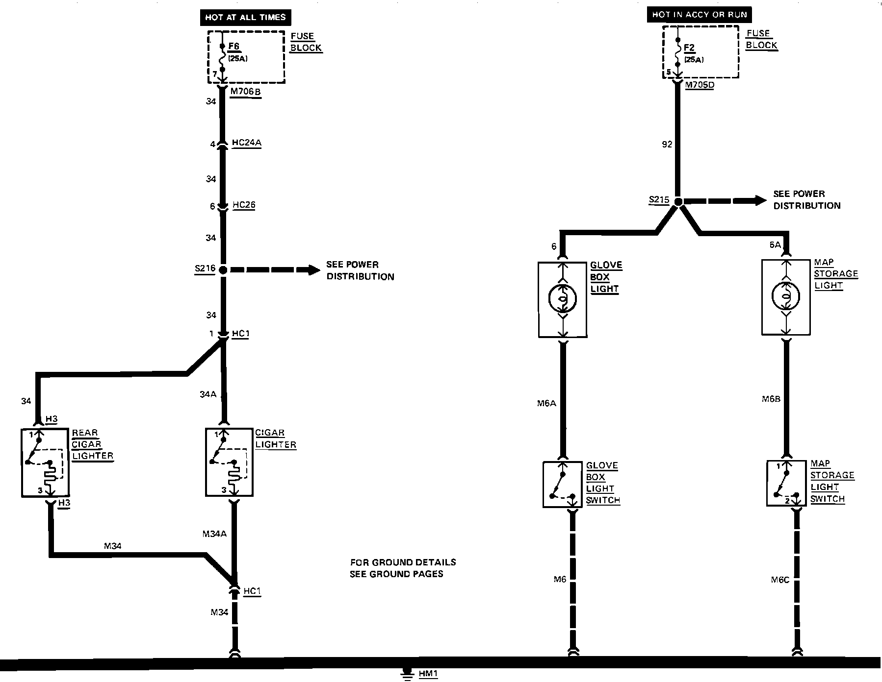 Cigarette Lighter, Glove Compartment Light, Map Storage Light Wiring Circuit: