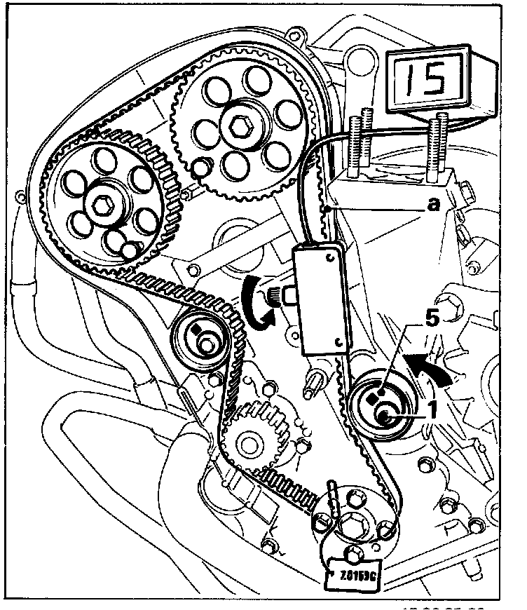 - Should the recorded value be outside the tolerance, repeat the belt tensioning procedure