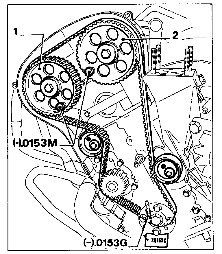 - Lock the crankshaft at (b) using pin (-).0153 G