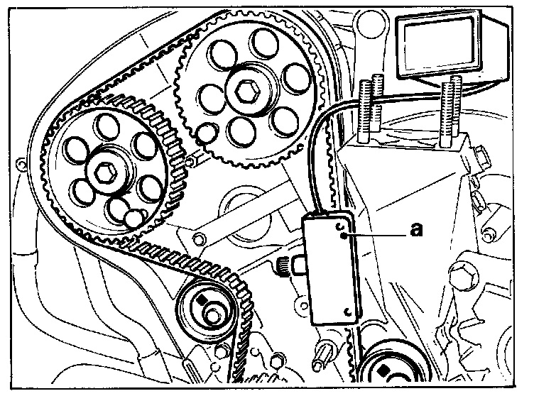 - Place the belt tensioning tool on the section (a) of the belt and lock it in place.