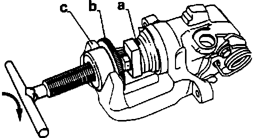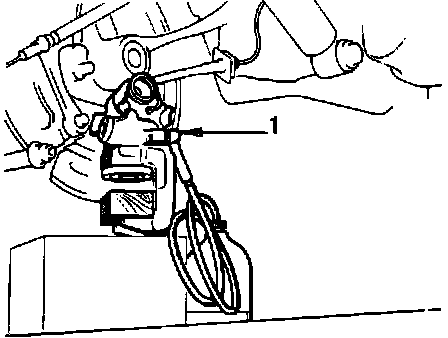 3. Position caliper as shown in Fig. 1. Leave caliper in this position until complete system is bled. Position a 3/4 inch block of wood in caliper jaws.