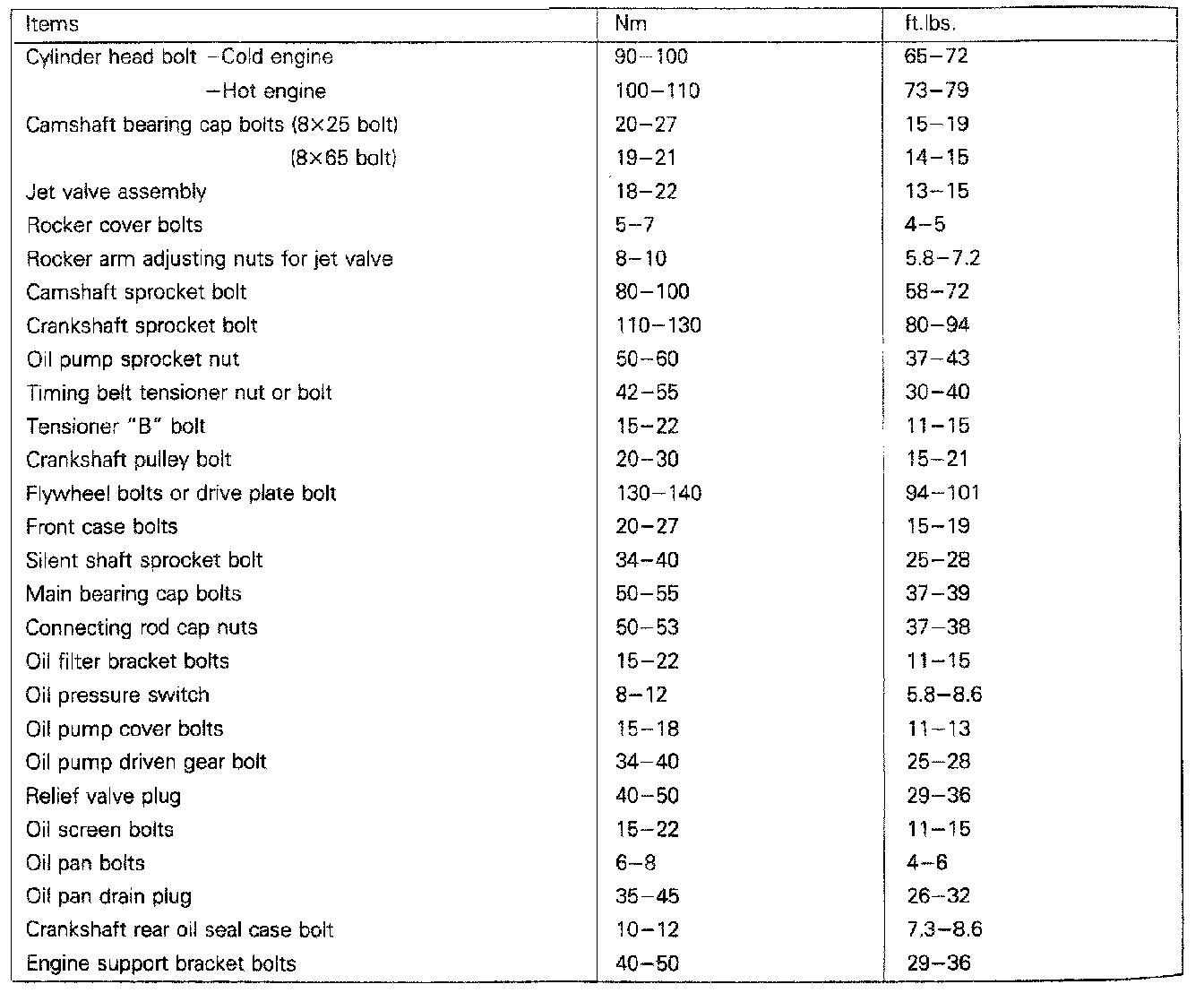 Tightening Specifications