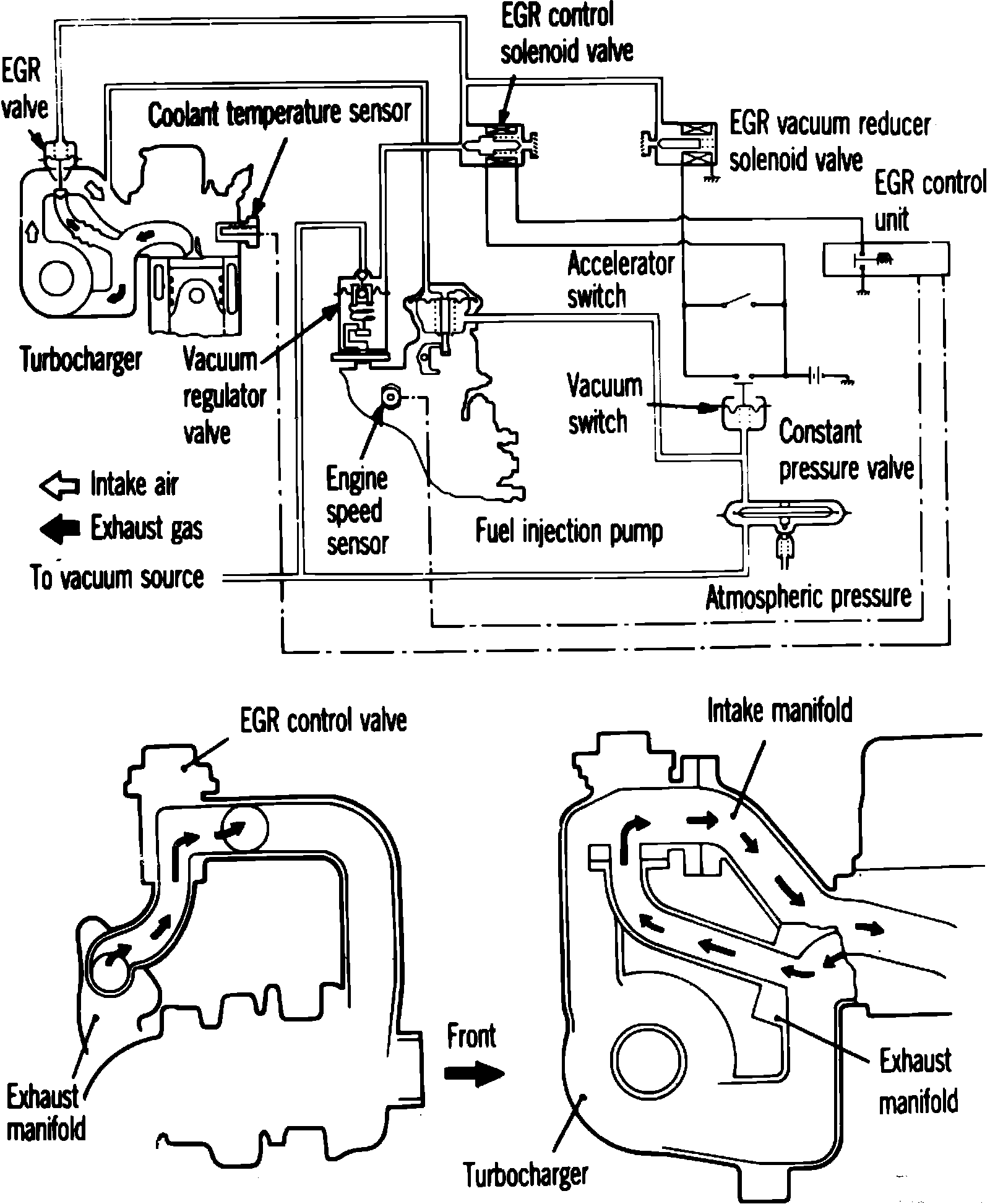 Exhaust gas recirculation system. 1984-86 2300cc diesel engine, Pickup, Calif.: