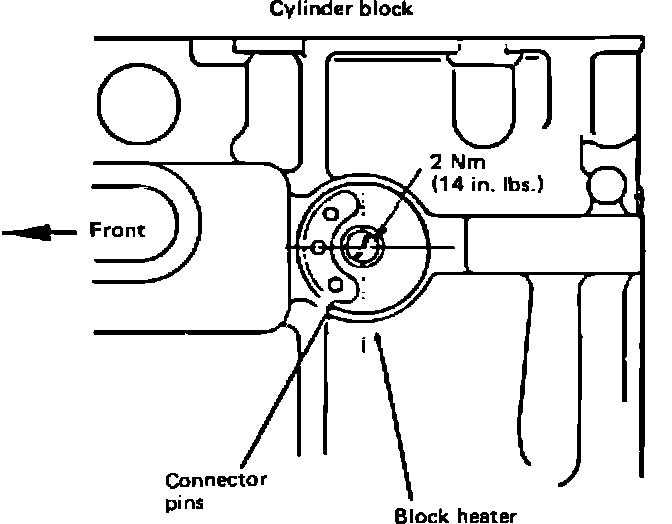 An engine block heater is standard equipment in the 2.3L turbo diesel engine. The heater improves the startability of the engine in cold weather. The procedure for replacing the engine block heater is described below: