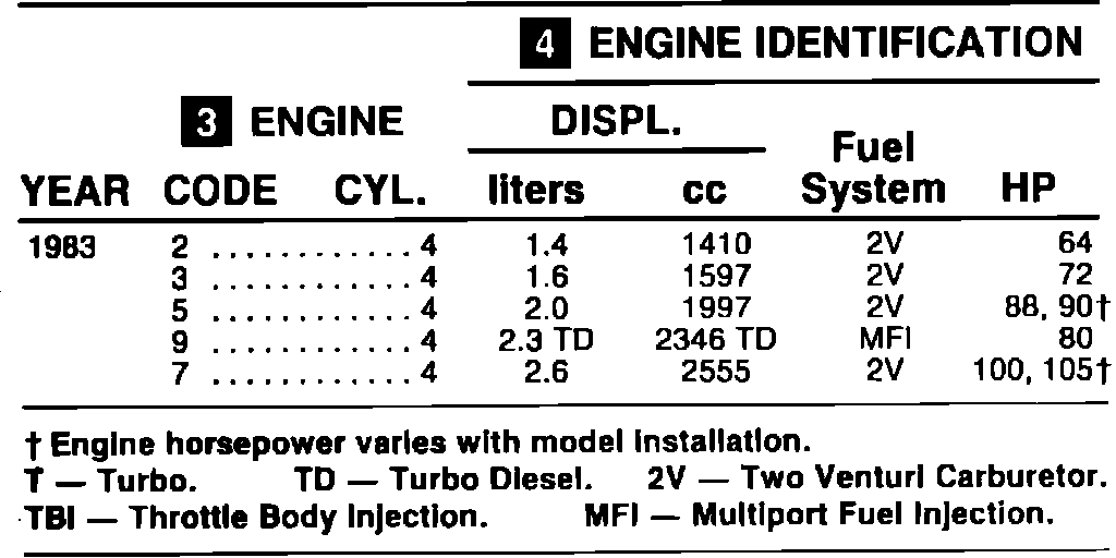 1. MODEL YEAR IDENTIFICATION: 10th character of VIN (1983 - D)