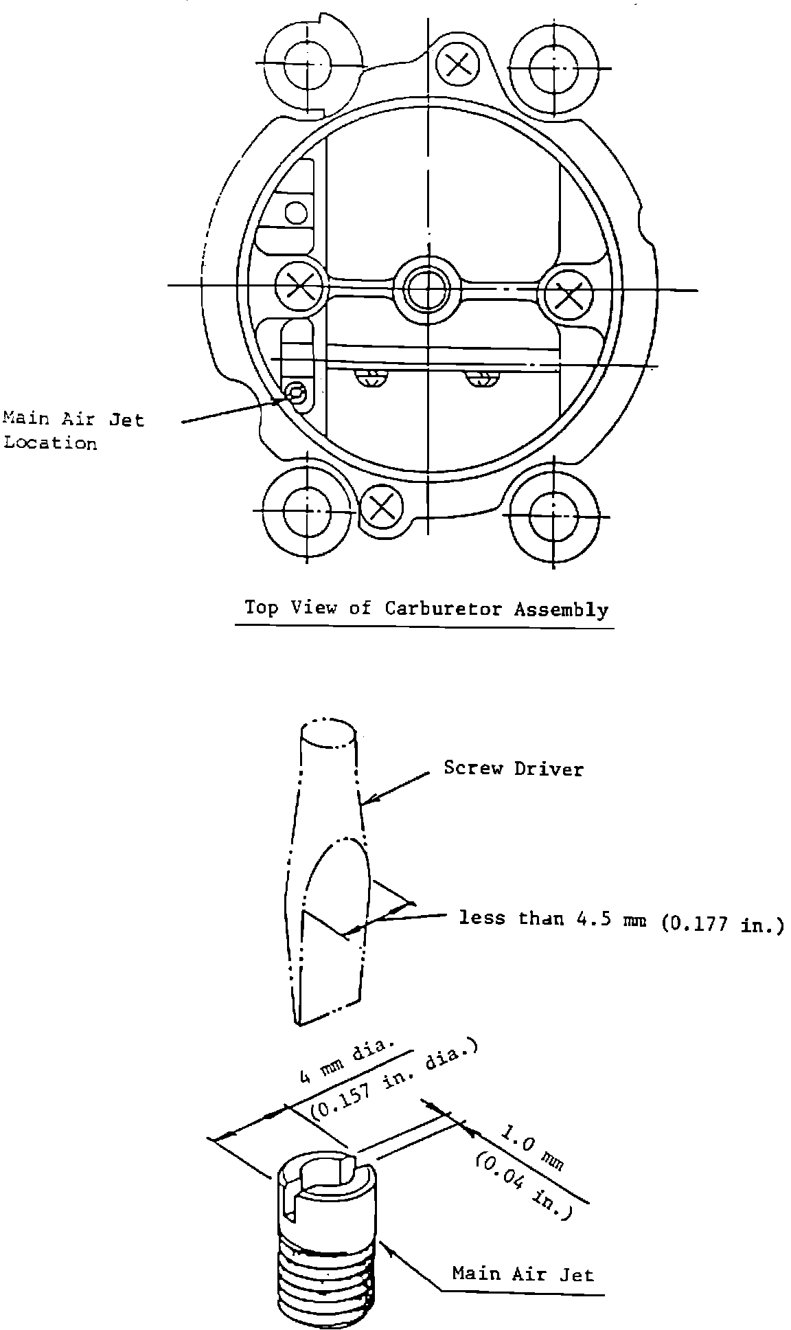See Figure 4 for location of primary main jet and type of screwdriver to be used to remove and install the air jet. An expandable tip screwdriver is recommended to prevent the air bleed from being dropped into carburetor bore.