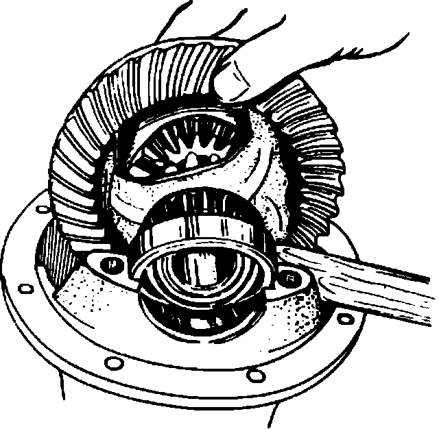5. Remove the drive pinion rear bearing outer race by the same manner as the removal of front race, using a suitable drift.