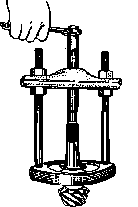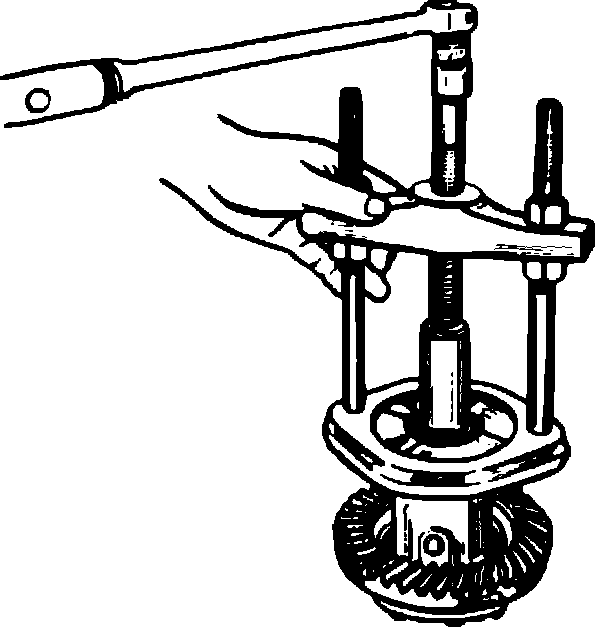 2. Remove the bearing cap (carrier cap), using the wooden handle of a hammer so the gears and other parts will not be damaged, remove the gear case assembly.