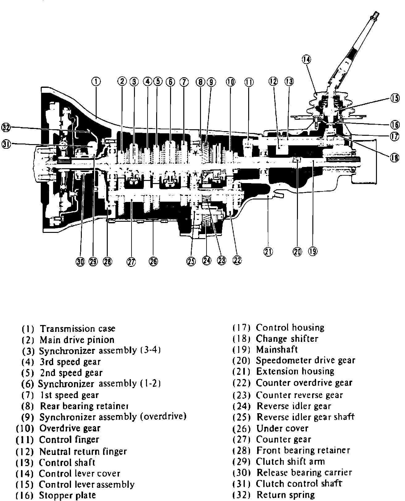 8. Remove speedometer cable, then disconnect transmission switch and back-up light switch wiring from transmission.