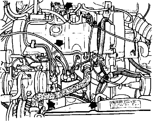 3. Drain cooling system, then disconnect radiator hoses at radiator and engine.