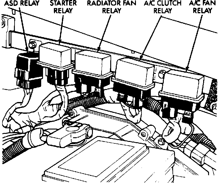 The relays are located on the left inner fender panel inside the engine compartment.