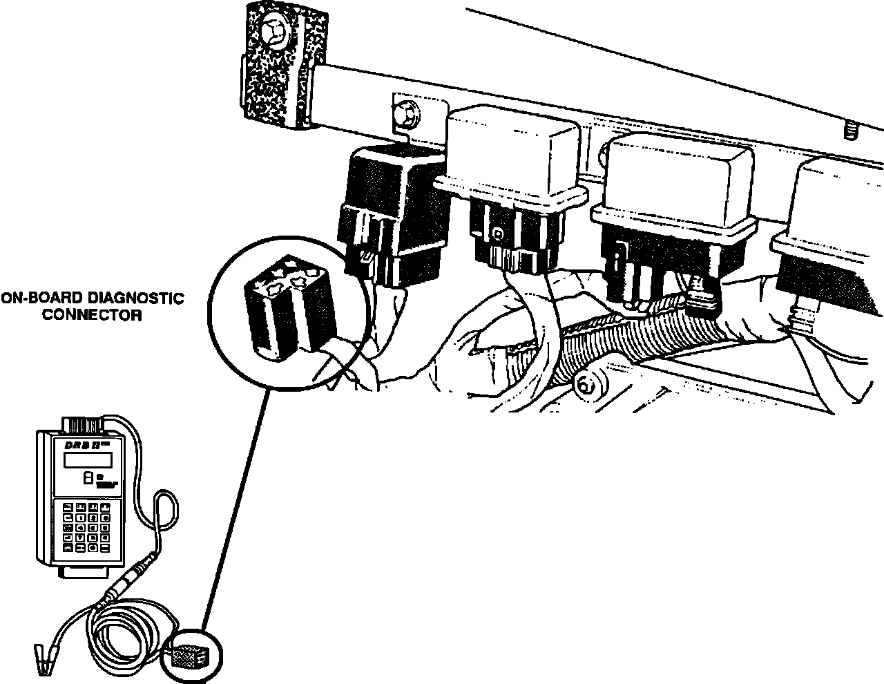 1. Connect the scan tool to the diagnostic connector located in the engine compartment near the Single Board Engine Controller (SBEC).