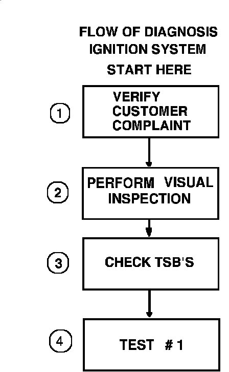 ^ START TESTING with TEST 1 - SPARK AT COIL. These tests are the most basic for this system, For further diagnosis refer to COMPUTERIZED ENGINE CONTROLS.