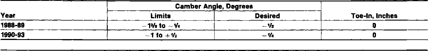 Rear Wheel Alignment Specifications: