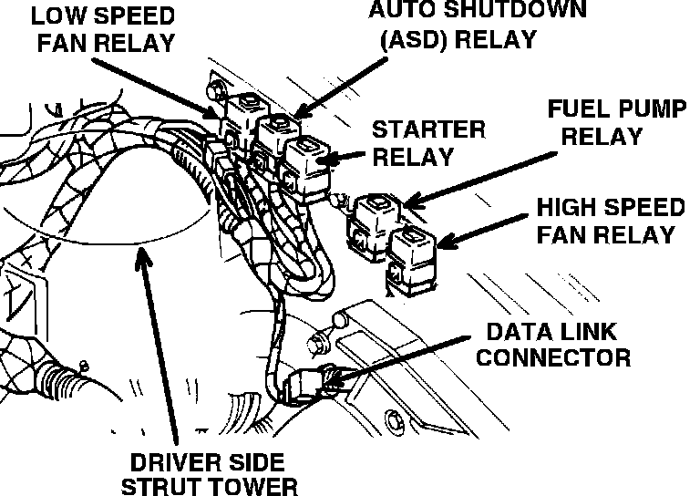 NOTE: The PCM controls the Auto Shutdown (ASD) and fuel pump relays simultaneously, through the same ground circuit.