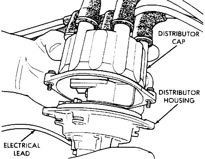 1. Remove distributor cap retaining screws and move cap to one side. (Leave plug wires attached.)