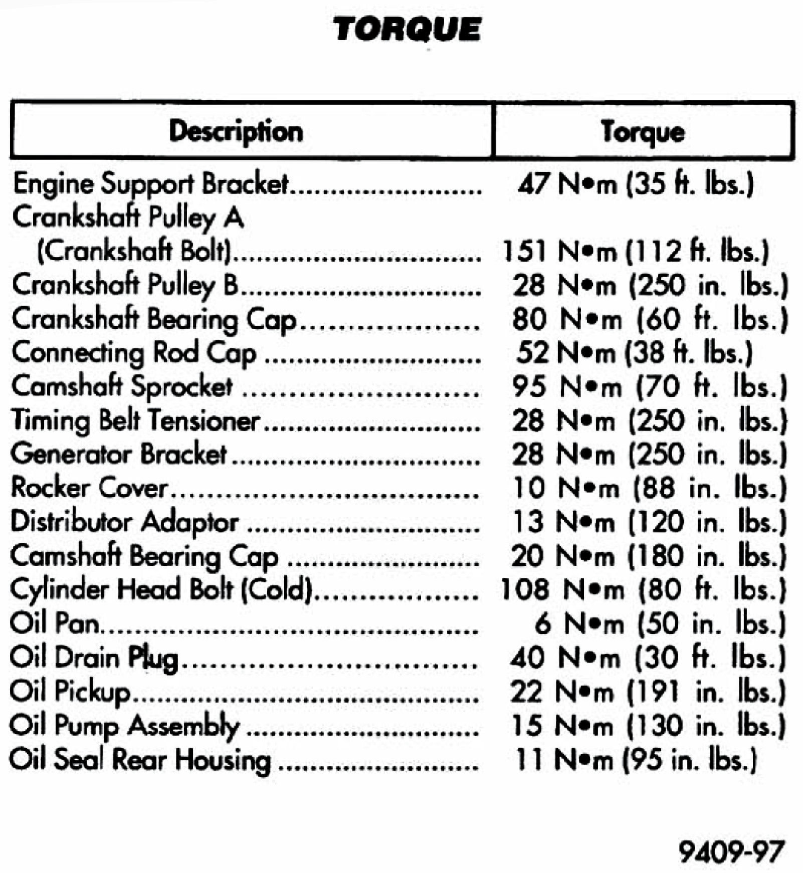 Tightening Specifications