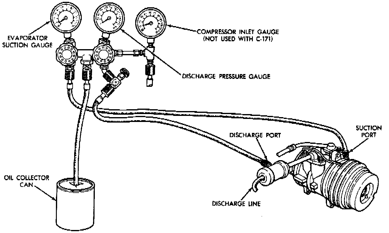 6. Charge system through suction side of air conditioning system with enough refrigerant to clear sight glass of bubbles.