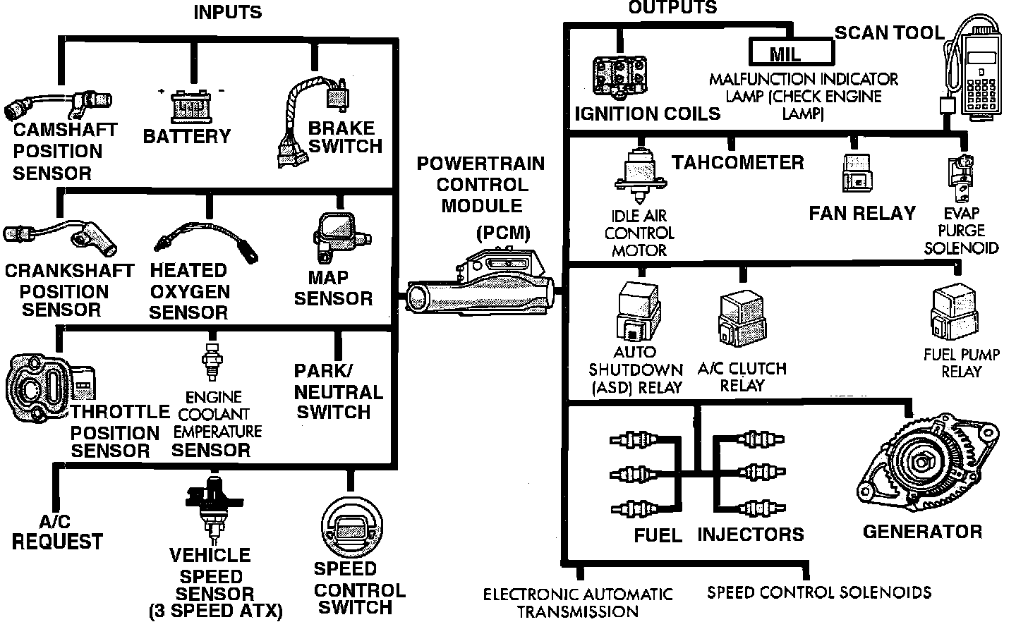 The PCM then actuates various output devices to achieve the best compromise between power, fuel consumption, and emissions.