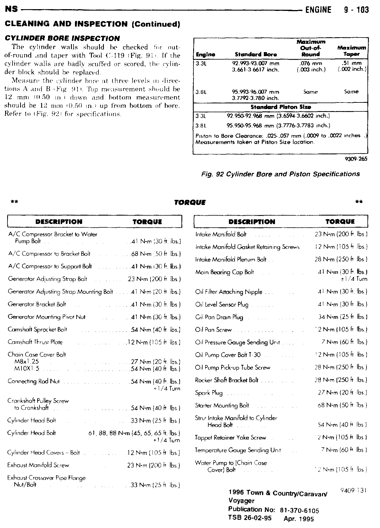 1996 CARAVAN/VOYAGER/TOWN & COUNTRY - Publication Number 81-270-6105