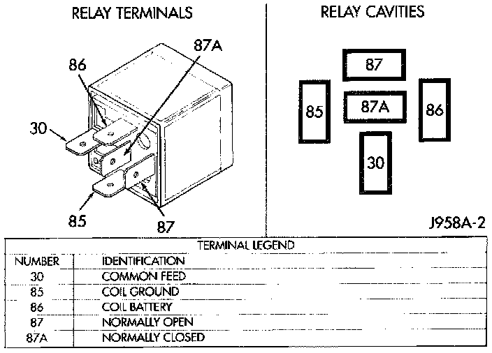 2. The relay normally closed terminal (87A) is connected to terminal 30 in the de-energized position, but is not used for this application. Go to Step 3.