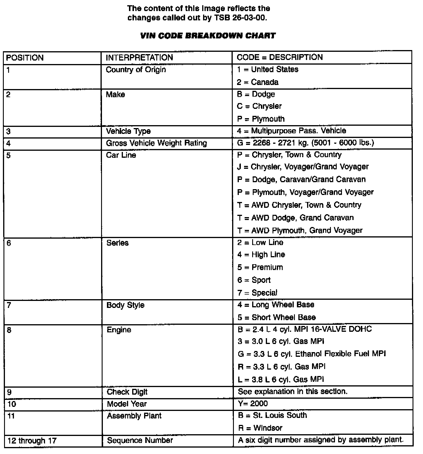 VIN Code Breakdown Chart: