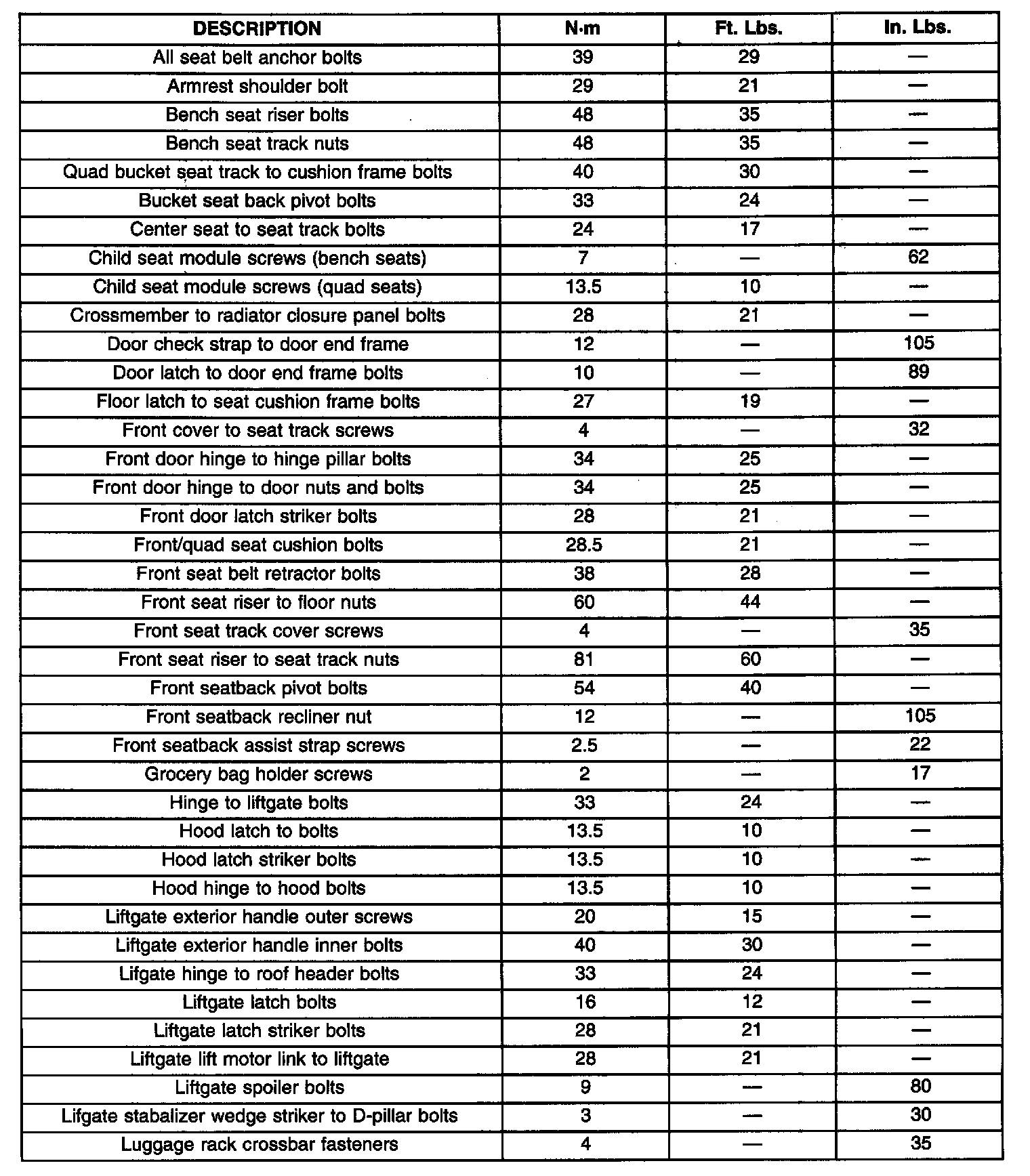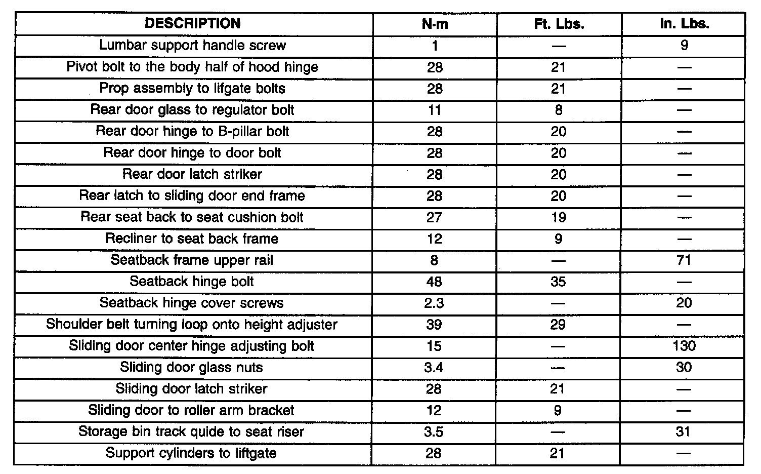 Torque Specifications Part 1: