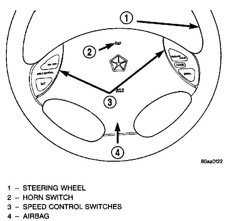 The speed control system has five separate resistive switches that provide a single multiplexed (MUX) voltage inputs to the PCM.The switch names are: ON, OFF. SET, COAST, RESUME, ACCEL, TAP-UP COAST, and CAA/CEL. Based on conditions when the buttons are pushed (and released), the five voltages ranges provided to the PCM result in the following functions: ON, OFF SET, COAST, RESUME, ACCEL, TAP-UP COAST, and CANCEL.