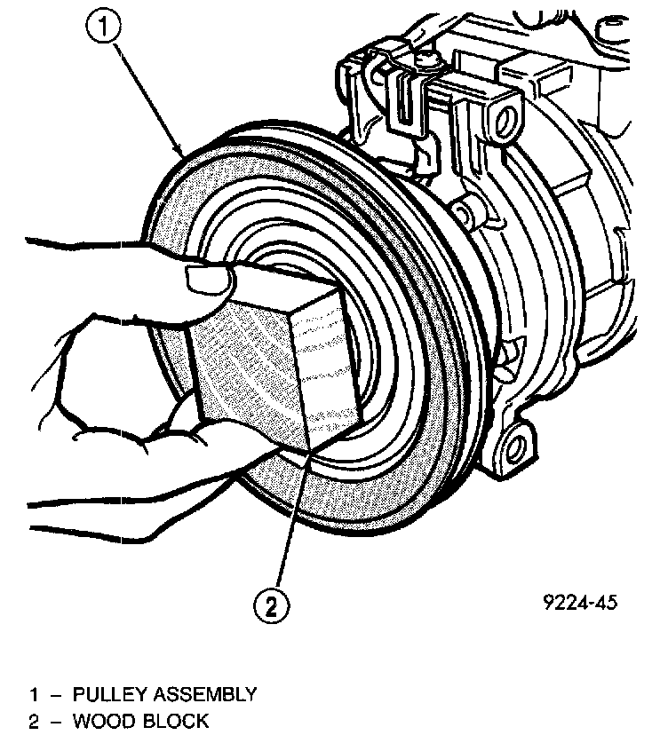 3. Install pulley assembly to compressor. If necessary, tap gently with a block of wood on the friction surface.