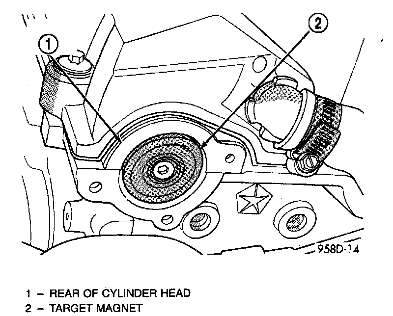 The Camshaft Position Sensor attaches to the rear of the cylinder head. A target magnet attaches to the rear of the camshaft and indexes to the correct position.