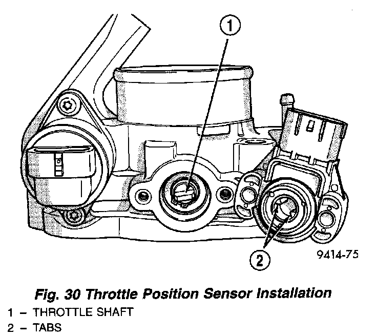 1. The throttle shaft end of the throttle body slides into a socket in the TPS. The socket has two tabs inside it. The throttle shaft rests against the tabs. When indexed correctly, the TPS can rotate clockwise a few degrees to line up the mounting screw holes with the screw holes in the throttle body. The TPS has slight tension when rotated into position. If it is difficult to rotate the TPS into position, reinstall the sensor with the throttle shaft on the other side of the tabs in the socket of the TPS.