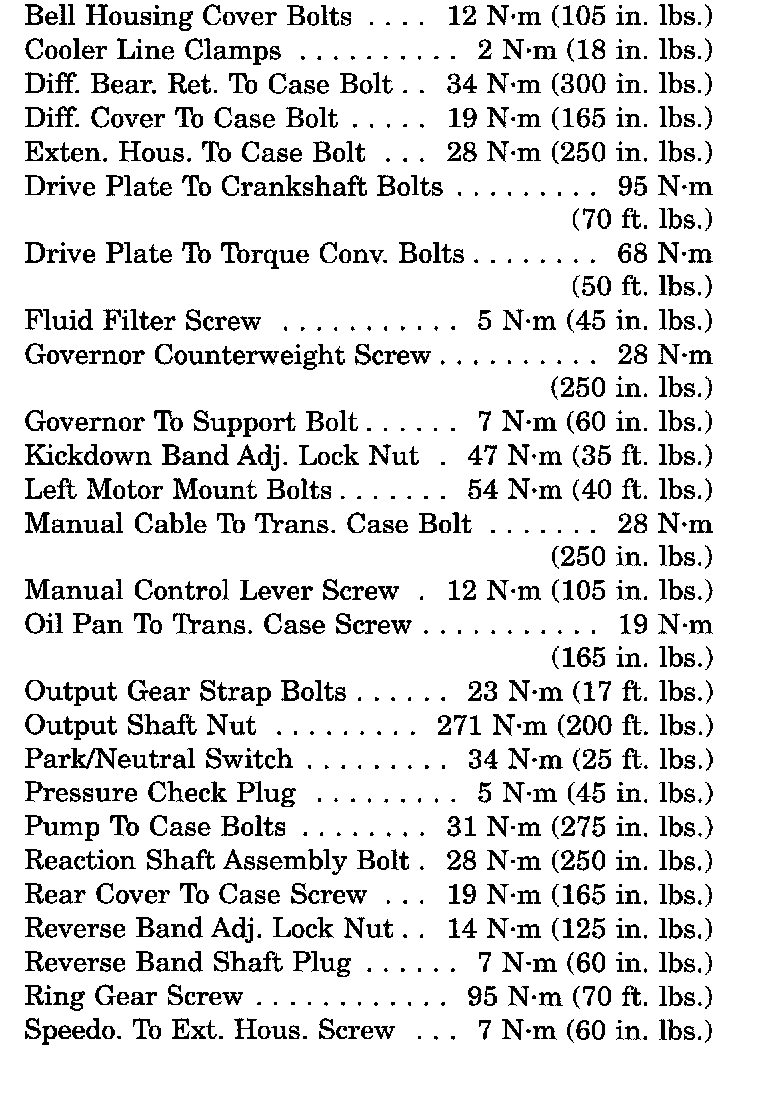 31TH Transaxle Torque Specifications: