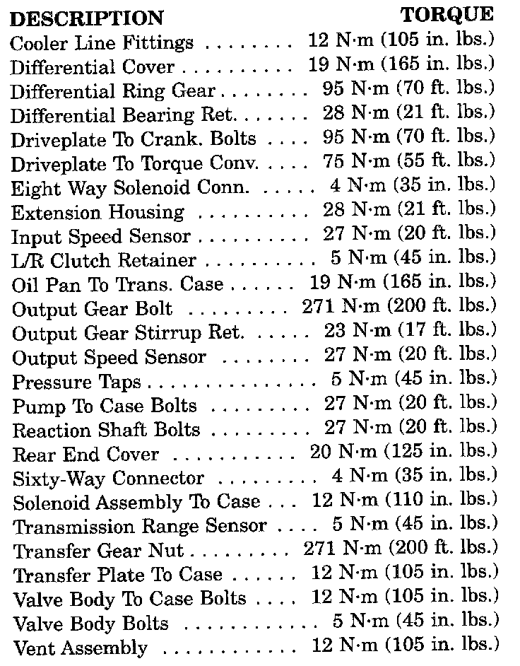 Torque Specifications Chart