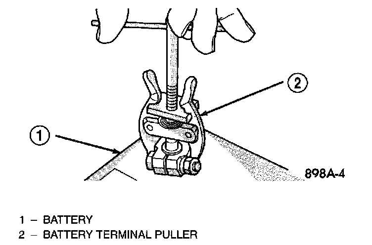 WARNING: DO NOT CHARGE A BATTERY THAT HAS EXCESSIVELY LOW ELECTROLYTE LEVEL. BATTERY MAY SPARK INTERNALLY AND EXPLODE. EXPLOSIVE GASES FORM OVER THE BATTERY. DO NOT SMOKE, USE FLAME, OR CREATE SPARKS NEAR BATTERY. DO NOT ASSIST BOOST OR CHARGE A FROZEN BATTERY. BATTERY CASING MAY FRACTURE. BATTERY ACID IS POISON, AND MAY CAUSE SEVERE BURNS. BATTERIES CONTAIN SULFURIC ACID. AVOID CONTACT WITH SKIN, EYES, OR CLOTHING. IN THE EVENT OF CONTACT, FLUSH WITH WATER AND CALL PHYSICIAN IMMEDIATELY. KEEP OUT OF REACH OF CHILDREN.Disconnect Battery Negative Cable: