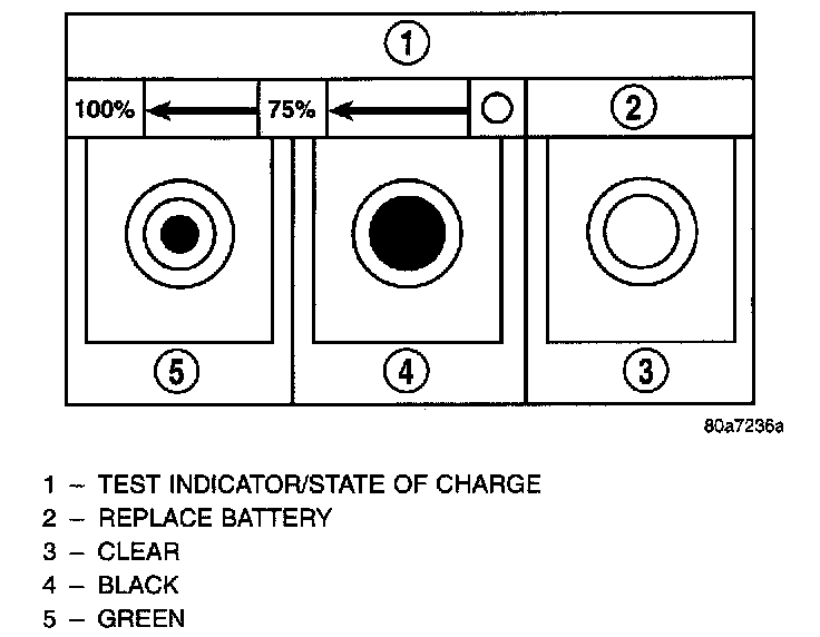 It may be necessary to jiggle the battery or vehicle to bring the green dot in the test indicator into view.
