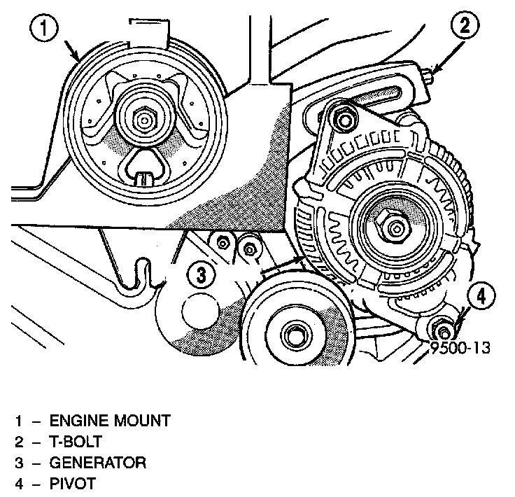 2. Install bolt to hold bottom generator pivot to lower mount.