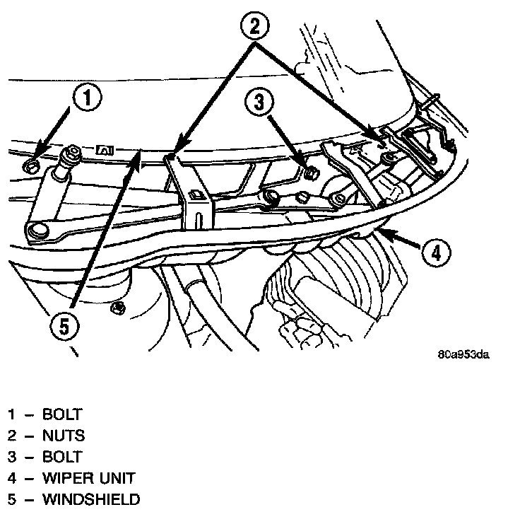 CAUTION: Do not allow wiper unit to rest on brake master cylinder reservoir, damage to brake system can result.