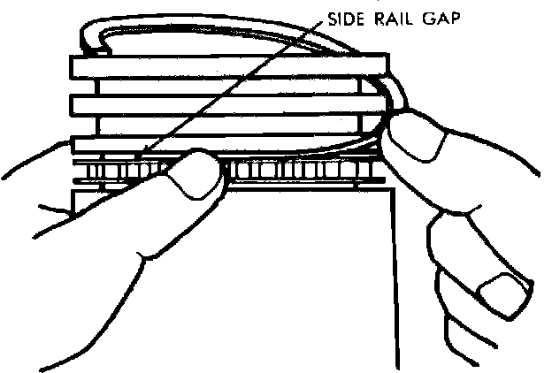 2. Hold end of ring firmly and press downward on portion to be installed until side rail is in position. Do not use a piston ring expander.