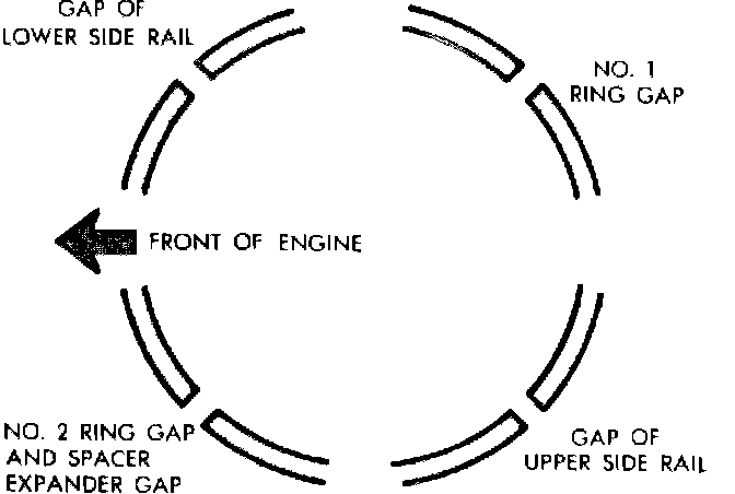 2. Position oil ring expander gap at least 45° from side rail gaps but not on piston pin center line or in thrust direction.