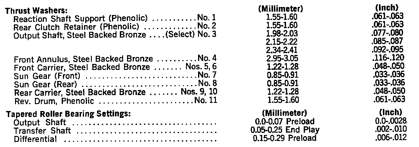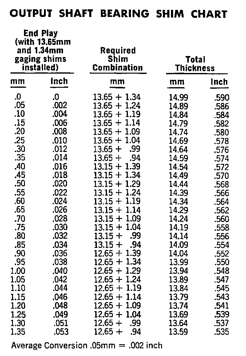 Output Shaft Bearing Shim Chart: