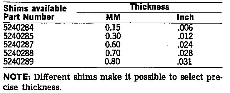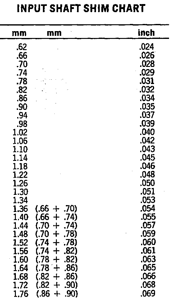 Input Shaft Shim Chart: