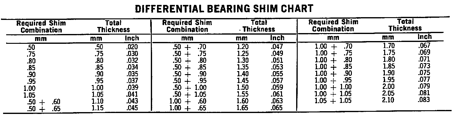 Differential Bearing Shim Chart: