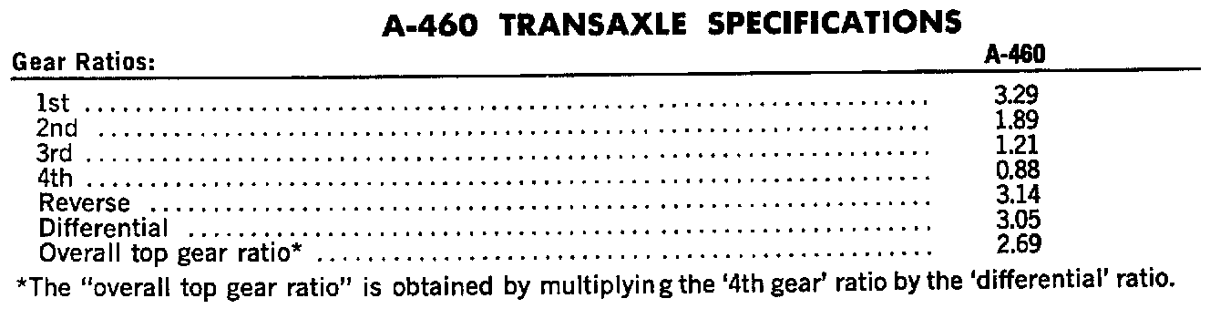 A-460 Transaxle Gear Ratios: