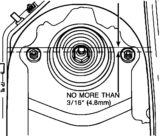 1. With the weight of the vehicle off of the front wheels and wheel assemblies hanging free, measure the amount of lateral movement at the top of the rebound retainer by pushing on the strut assembly from under the fender. This measurement should not exceed 3/16" (4.8 mm) (Figure 2).