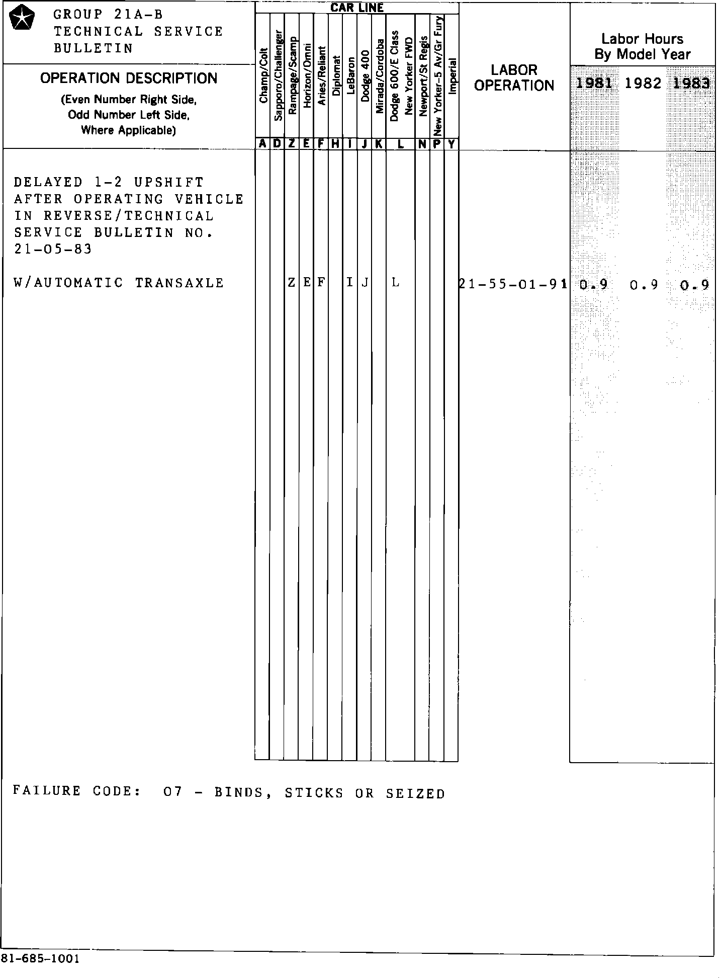 All 1981-1983 Domestic Front Wheel Drive Cars & Trucks Equipped With Automatic Transaxle