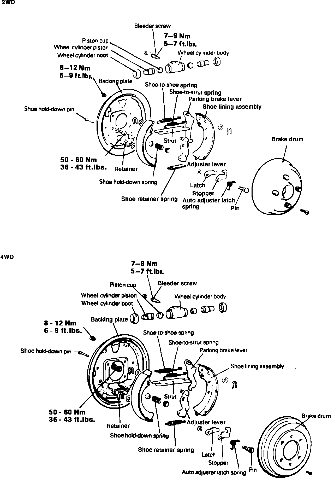 Fig. 2 Rear Drum Brake Assembly Exploded View - Colt Vista: