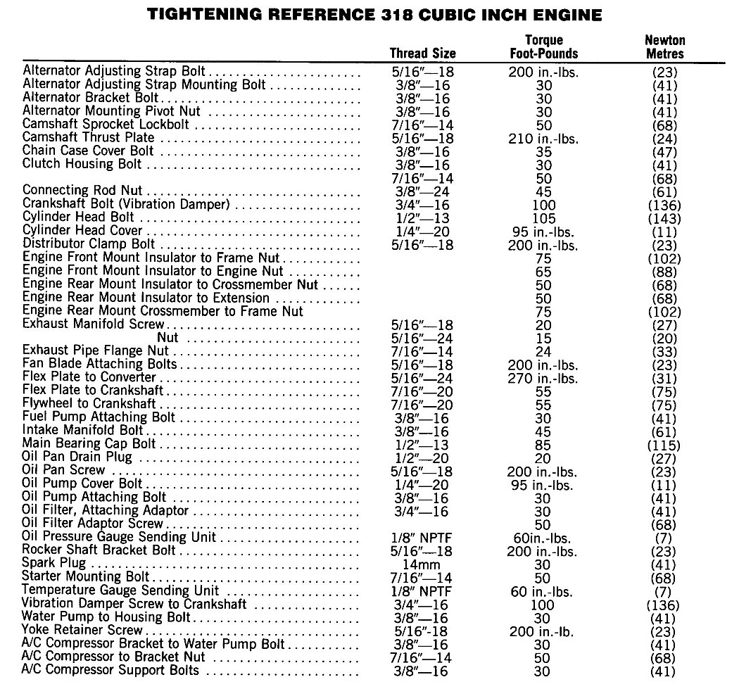 Grand Fury/Salon V8-318 5.2L VIN S 4-BBL