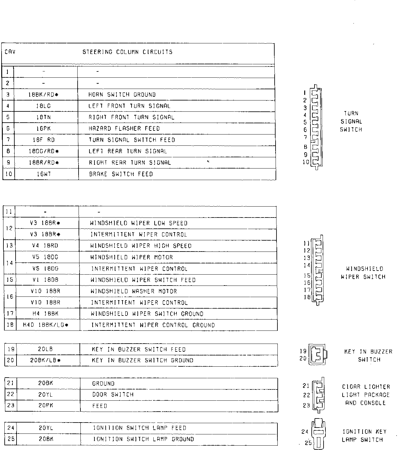 Fig. 7 Steering Column Connector (25 Way). 1985: