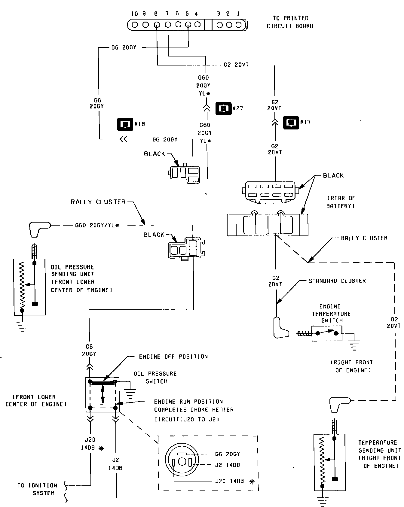 Fig. 33 Oil Pressure & Temperature Warning System Wiring Circuit. 1985 W/2.2 Litre Engine: