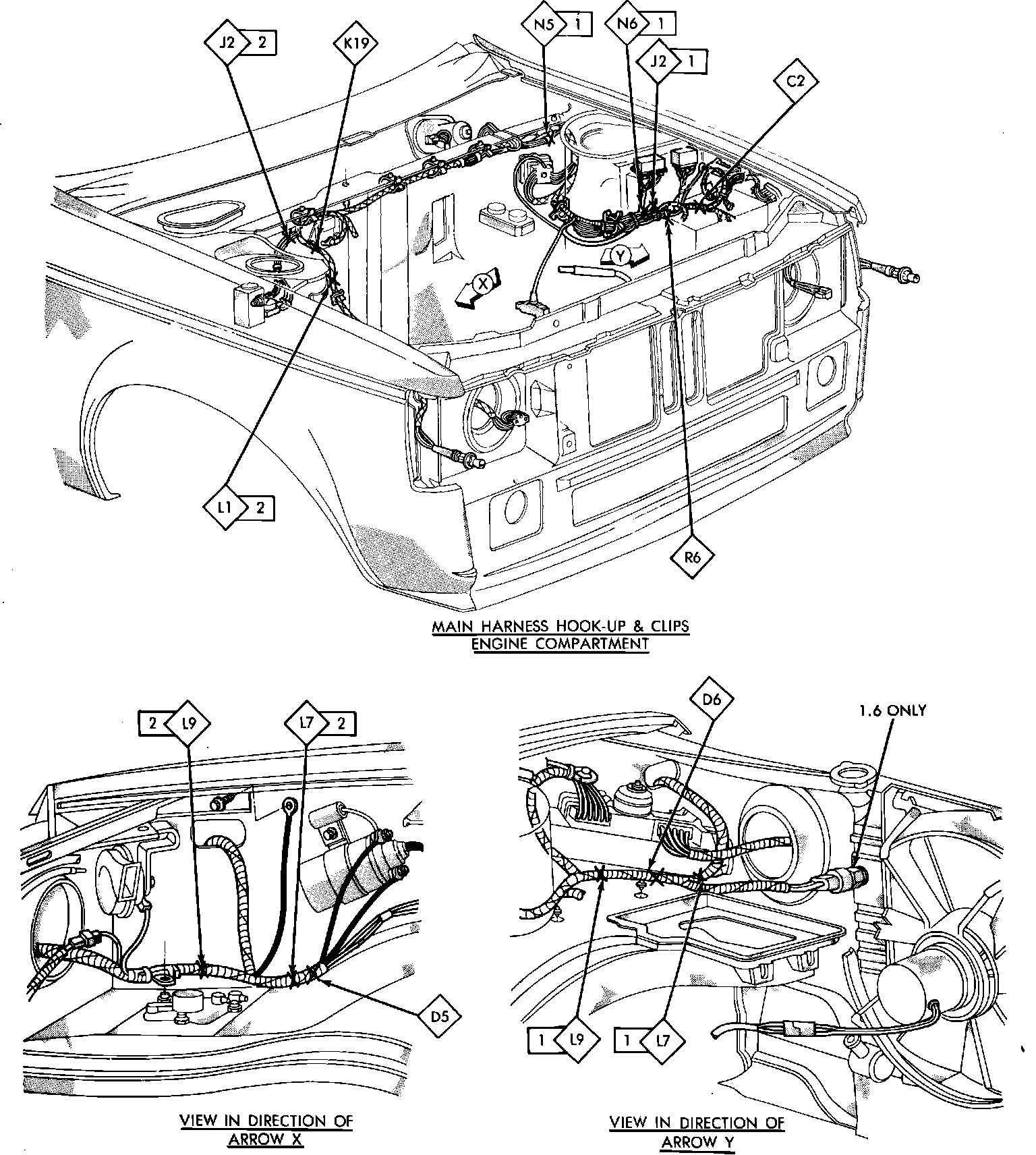 Fig. 43 Splice Location (Engine Compartment & Front End). 1985: